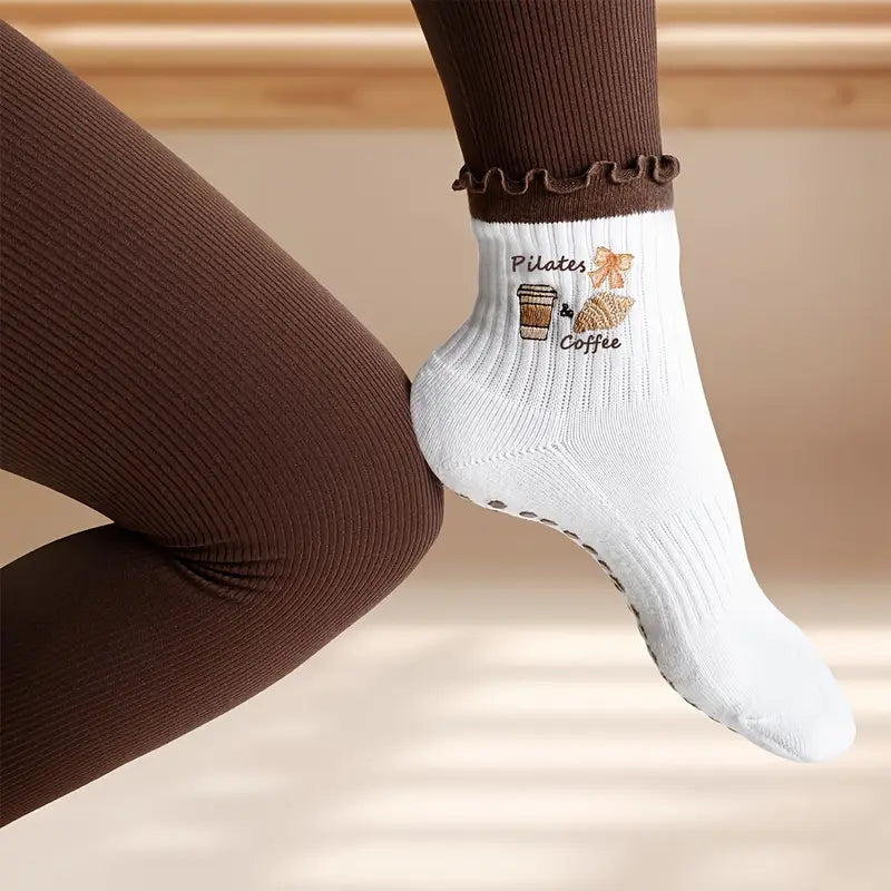 Çorapet Pilates & Coffee ofrojnë qëndrueshmëri perfekte, butësi të jashtëzakonshme dhe një prekje stili që të bën të ndihesh mirë.